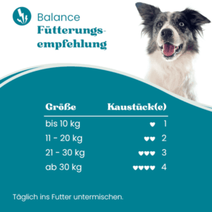 Balance enthält eine sorgfältig abgestimmte Mischung aus natürlichen Kräutern, Proteinen, Tryptophan und wertvollen Ölen. Diese Kombination kann im Rahmen einer ausgewogenen Ernährung zum allgemeinen Wohlbefinden deines Hundes beitragen.