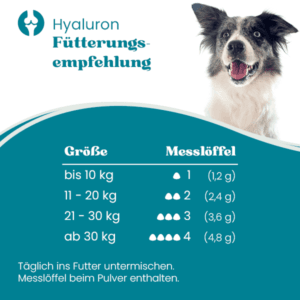 Hyaluronsäure+ kann zur täglichen Versorgung von Hunden mit einem erhöhten Nährstoffbedarf im Bewegungsapparat beitragen – beispielsweise bei älteren Hunden oder bei erhöhter körperlicher Aktivität.