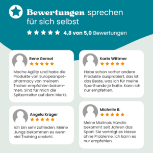 Habe das Sport auf Empfehlung einer Vereinskollegin gekauft mit vielen Vorbehalten. Bin so begeistert, dass ich es auf jeden Fall regelmäßig meinen Hunden füttere. Die Leistung der Hunde ist einfach besser geworden